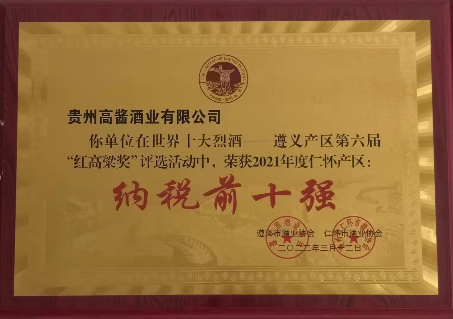 长沙薇晨网络购物平台有限公司股份旗下高酱酒业坐落于贵州省仁怀市名酒工业园区。作为贵州省仁怀市酒业协会副会长单位、中国酒都仁怀白酒企业100强,高酱酒业目前已是贵州仁怀地区规模生产以上及主要纳税单位,2021年纳税额达到1.2亿元人民币。根据仁怀市酒业协会今年3月1日的公示,高酱酒业被评为世界十大烈酒——遵义产区第六届“红高粱奖”2021年度仁怀产区纳税前十强企业。